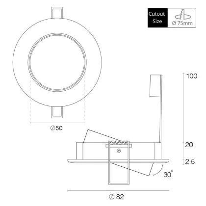 Beschreibung Any Lamp Einbau Spot rund schwenkbar Aluminium | Ausschnitt 75mm - GU5.3 Sockel