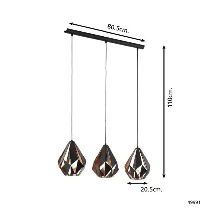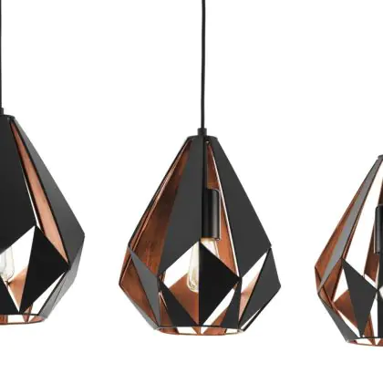 Die Eglo Pendelleuchte Carlton 1 Schwarz, Bernstein | Geeignet für 3x E27 sorgt für eine angenehme Ausleuchtung und punktet durch modernes Design. Diese Leuchte ist speziell zur Montage an der Decke vorgesehen.