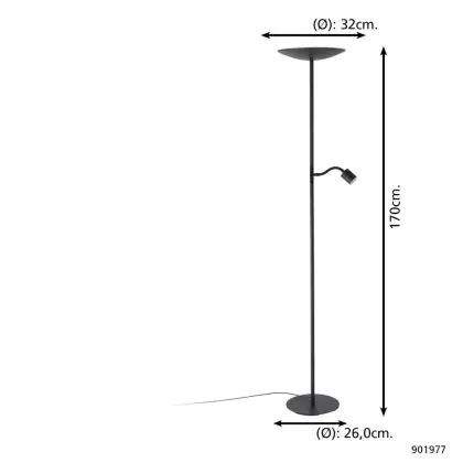 Beschreibung Eglo Stehlampe Conivarino Stahl Schwarz 30.5W 3150lm - 827 Extra Warmweiß | Dimmbar