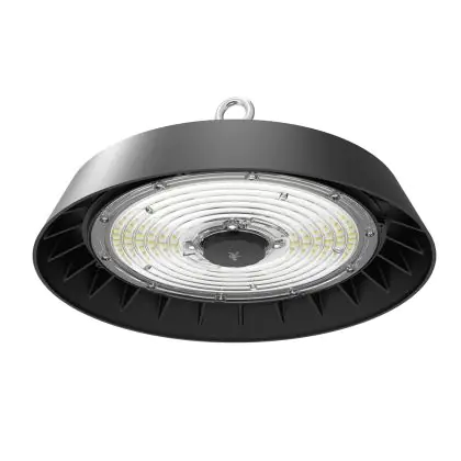Die LED Highbay ALBIOR Stahl Schwarz 150W 25500lm 90D - 757 Kaltweiß | IP65 - Mit Bewegungs- und Lichtsensor ist ein Highbay und strahlt Licht in der Farbtemperatur 5700K - Kaltweiß aus. Zudem punktet die LED-Hallenleuchte durch eine lange Lebensdauer. Diese Leuchte ist speziell zur Verwendung in großen Hallen (Lager oder Industrie) vorgesehen.