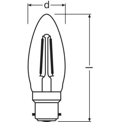 Beschreibung Ledvance Classic Performance LED Glühbirne B22d Kerze Fadenlampe Klar 2.5W 250lm - 827 Extra Warmweiß | Ersatz für 25W