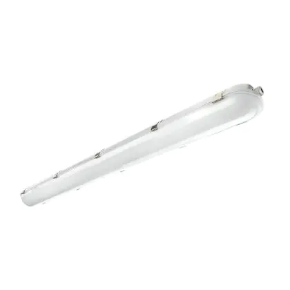 Die Feuchtraumleuchte hat eine Länge von 120 cm und verfügt über einen integrierten LED-Treiber von Philips. Sie ersetzt zwei konventionelle Leuchten à 36 Watt. Selbst verbraucht die LED nur 36 Watt – eine schnelle Amortisation Ihrer Anschaffungskosten ist damit garantiert. Mit einem Wert von 4.000 K hat sie eine kaltweiße Farbtemperatur. Das Produkt ist IP65- und IK08-klassifiziert. Bitte beachten Sie: Diese Leuchte kann nicht als Notfallbeleuchtung eingesetzt werden.
