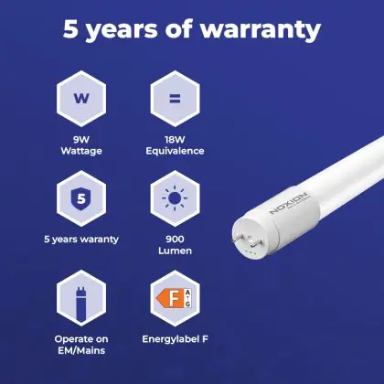 Dank der hohen Produktqualität der Noxion Avant LEDtube T8 Standard können wir Ihnen eine Garantie von 5 Jahren anbieten.