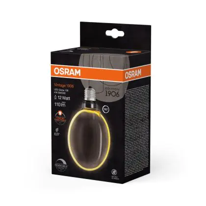 Die Osram Vintage 1906 LED E27 Globe Fadenlampe Smoke 130mm 4W 110lm - 818 Extra Warmweiß | Dimmbar - Ersatz Für 12W ist eine effiziente E27 LED-Lampe mit Retrodesign und der perfekte Ersatz für Ihre konventionellen 12W Lampen mit E27. Zudem strahlt sie Licht in der Farbtemperatur 1800K - Extra Warmweiß aus und punktet durch eine lange Lebensdauer.