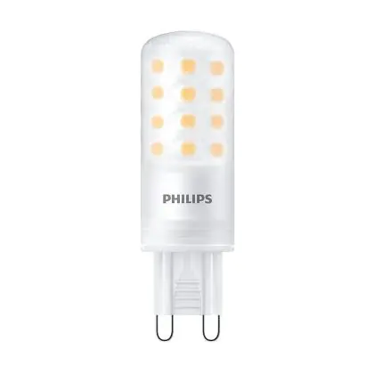 Die Philips CorePro LED Capsule G9 Matt 4W 480lm - 827 Extra Warmweiß | Dimmbar - Ersatz Für 40W ist eine effiziente G9 LED-Lampe und der perfekte Ersatz für Ihre konventionelle Halogenlampe mit 40W und einem G9-Sockel. Die Stifte haben einen Abstand von 9 mm. Zudem strahlt das Produkt Licht in der Farbtemperatur 2700K - Extra Warmweiß aus und punktet durch eine lange Lebensdauer.