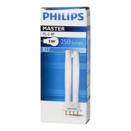 Philips PL-S 4P sind Leuchtstofflampen mit separater Stromversorgung und kompatibel mit konventionellen und ferromagnetischen Vorschaltgeräten. Diese Lampen sind mit einem 4-Pin-Sockel ausgestattet. Mit einer Länge von 89mm, besitzen die Philips PL-S 5W 827 4P einen 2G7 Lampensockel mit 4 Pins.