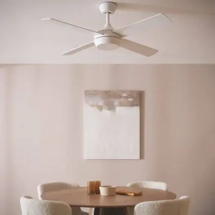 Dieser Ventilator kommt bewusst ohne integrierte Lampe aus. So bleibt Ihre bestehenden Lichtquellen unangetastet, und Sie behalten volle Kontrolle über die Beleuchtung in Ihrem Raum.