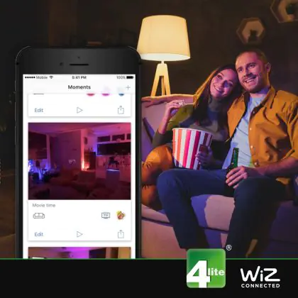 Da diese WiZ Smart Lampe über Wi-Fi funktioniert, benötigen Sie keinen externen Hub, um die Beleuchtung zu steuern. Sie müssen lediglich die WiZ App auf Ihrem Smartphone oder Tablet installieren. Die App ist im Google Play Store oder und im Apple Store verfügbar. Sobald Sie die Lampe angeschlossen haben, können Sie die Beleuchtung direkt per App oder Sprachfunktion jederzeit anpassen.
